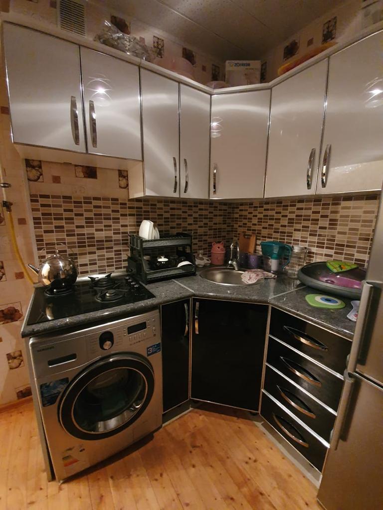 4 MKR, “TERLAN” sadliq sarayindan asagi, umumi sahesi 45 kv m olan 2 otaqli menzil satilir. Mertebe 5/5, yaxsi temir, qurasdirilmis metbex mebeli, sanuzel ayri-ayridir, qaz, su, isiq daimidir. Butun senedler qaydasindadir CIXARISH var. Yaxinliqda usaq baxcasi, mekteb, dayanacaq, market ve diger iashe xidmeti obyektleri yerlesir. Menzil butun mebel ve texnikasi ile bir yerde satilir. 4 МКР, ниже д/т “TERLAN”, улица М. Джелал, продаётся 2-х комнатная квартира обшей площадью 45 кв м. Этаж 5/5, хороший ремонт, встроенная кухонная мебель, с/у раздельные, газ, свет, вода круглосуточная. Все документы в порядке имеется ЧЫХАРЫШ. Рядом детский сад, школа, магазины, остановка и тд.. Квартира продаётся со всей мебелью и техникой.