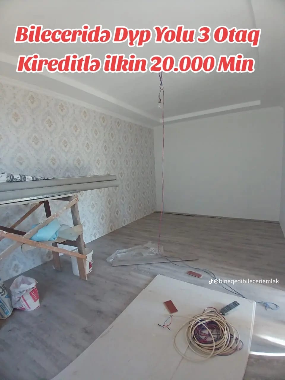 KREDİT: Biləcəri-Binəqədi yolunda 1.2 sotda 3 otaq, S/Q və mətbəxi var. Qaz, su, işıq daimidir. Ev 75 kv.dır. Tam təmirli. Qiyməti ilkin ödəniş 20.000 AZN. Aylığı 500-600AZN. Ümumi qiyməti 65.000 AZN. İlkin ödənişi və aylığı razılaşmaq olar