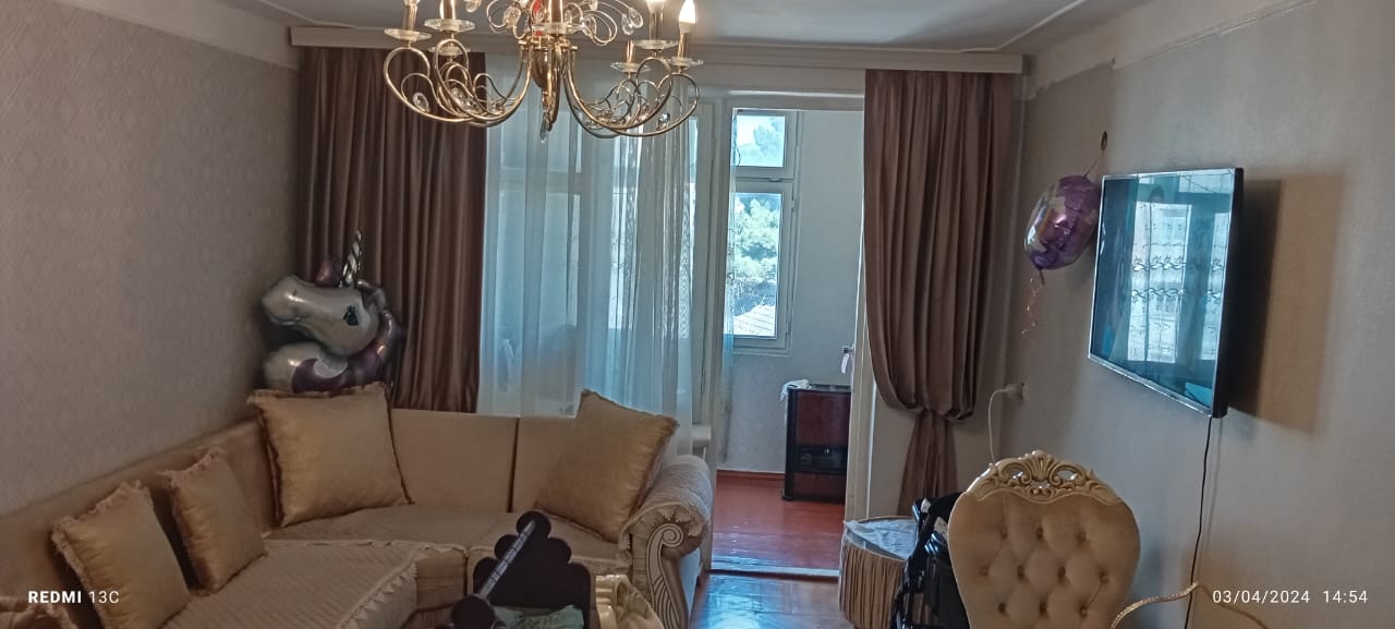 Sabuncu r-n.,Bakixanov qes.,Asan X. yaxinliginda 5/4 mertebesinde, orta blok, minsk layiheli,sahesi 55 kv.m., dowemesi parket,2 eyvani (1 eyvani-boyukdu otag kimi) yelceken, yaxwi temirli 2 otagli menzil satilir.S/g temirsizdi.Giymeti sondu. Butun infrastruktur etrafinda. Ofis komissiyasi 1 % tewkil edir. В Сабунчинском р-не, в пос. Бакиханова недалеко от Асан Х. в 5/4 этаже минского проекта,площадью 55 кв.м.,полы паркет,2 балкона,сквозная (1 балкон большой как комната)со хорошим ремонтом продается 2 комнатная квартира. С/у требует ремонта.Цена окончательная. Вся инфраструктура вокруг. Офисные комиссионные составляют 1 %.