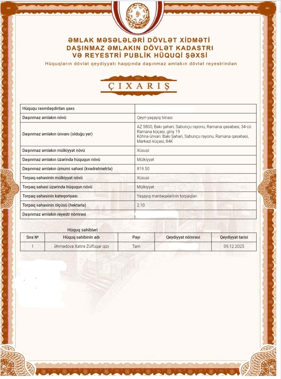 | Qiymət | 25000 AZN |