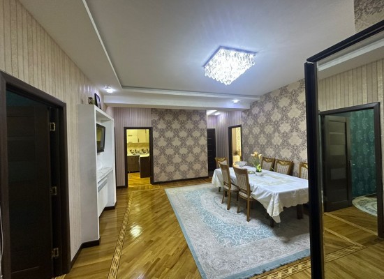 Bakıxanov qəsəbəsində, Sakit Qocayev küçəsində, Bakıxanov (Talkuçka) bazarının yaxınlığında və əsas yolun üzərində yerləşən, Rahat Market və KFC olan binada 12 mərtəbəli yeni tikilinin 7-ci mərtəbəsində yerləşən 3 otaqlı mənzil satılır. Mənzilin ümumi sahəsi 127–130 kv.m-dir və qanuni 3 otaqdan ibarətdir. Mənzil tam təmirli və tam əşyalıdır, evdə olan bütün əşyalar qalır. Planlaşdırması geniş və rahatdır, otaqlar işıqlı və havadardır. Mənzil yelçəkəndir (skvaznoy) və hər iki tərəfə baxışı var. 2 balkonu mövcuddur – biri küçəyə, digəri isə həyətə baxır. Mənzildə 2 sanuzel var və isti pol sistemi ilə təchiz olunub. Döşəmə keyfiyyətli palıd (İtaliya) parketdir. İstilik sistemi kombidir. Binada 2 sürətli lift, 2 mərtəbəli qapalı yeraltı qaraj, 24 saat mühafizə və təhlükəsizlik sistemi mövcuddur. Həyətində uşaqlar üçün oyun meydançası var. Su, qaz və işıq daimidir. Mənzilin çıxarışı (kupçası) var, sənədlər tam qaydasındadır və ipotekaya yararlıdır. Ərazi infrastrukturu baxımından çox əlverişlidir. Yaxınlıqda məktəb, bağça, parklar, iri ticarət mərkəzləri və müxtəlif iaşə obyektləri yerləşir. Şirkət haqqı 1%-dir. Əlavə məlumat və mənzilə baxış üçün əlaqə saxlaya bilərsiniz.KOD:8636