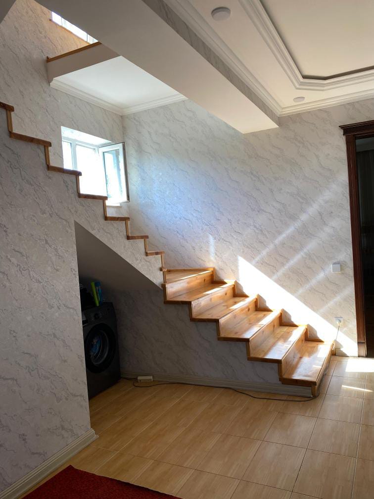 Rəsulzadə qəsəbəsi, Varovski ərazisində yerləşən bu 5 otaqlı həyət evi ailəli insanlar üçün ideal seçimdir. Yeni təmirdən çıxmış ev 280 m² yaşayış sahəsinə malikdir və 3 sot torpaq sahəsində yerləşir. Planlaşdırması çox rahatdır: geniş zal, evin daxilində 2 hamam otağı mövcuddur. Həyətdə ayrıca mətbəx və ayaqyolu yerləşir ki, bu da əlavə rahatlıq yaradır. Evin mansardı və böyük padvalı var, əlavə istifadə sahəsi kimi çox əlverişlidir. Qaz, su və işıq daimidir. Çıxarış mövcuddur, sənədlər tam qaydasındadır və alqı-satqıya hazırdır. Məktəblər, uşaq bağçaları, marketlər və parklar piyada məsafəsindədir. Azadlıq və Nəsimi metro stansiyalarına rahat çıxış imkanı var. Öz həyəti olan, təmirli, geniş və problemsiz sənədlərə malik ev axtaranlar üçün əla fürsətdir. Hazır gir yaşa vəziyyətindədir. Təcili satılır. KOD:7768